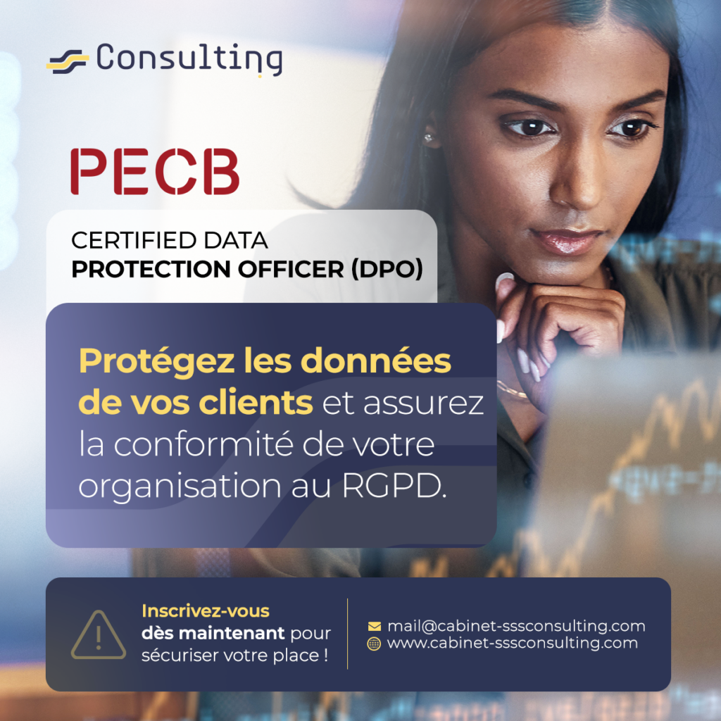 La formation GDPR – Certified Data Protection Officer de PECB vous dote des connaissances et compétences indispensables pour remplir le rôle de délégué à la protection des données (DPO) dans le cadre d’un programme de conformité au RGPD. Vous apprendrez à informer, conseiller et surveiller la conformité au règlement, tout en assurant la coopération avec l’autorité de surveillance. À l’issue de la formation et après réussite de l’examen, vous pourrez obtenir la certification « PECB Certified Data Protection Officer », attestant de vos capacités professionnelles à protéger les données personnelles et à respecter les exigences du RGPD.